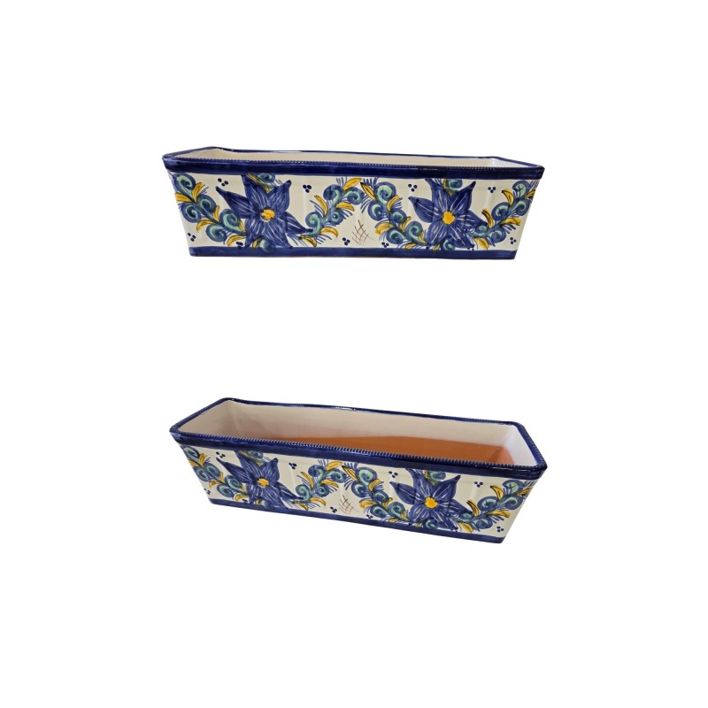 Maceta terracota, decorada a mano cada pieza está diseñada y adaptada al formato de la pieza, por lo tanto, no hay ninguna pieza igual esa es la autenticidad de la cerámica hecha a mano.