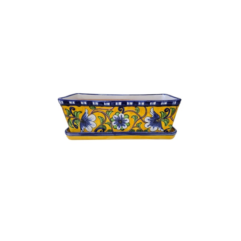 Maceta terracota, decorada a mano cada pieza está diseñada y adaptada al formato de la pieza, por lo tanto, no hay ninguna pieza igual esa es la autenticidad de la cerámica hecha a mano.