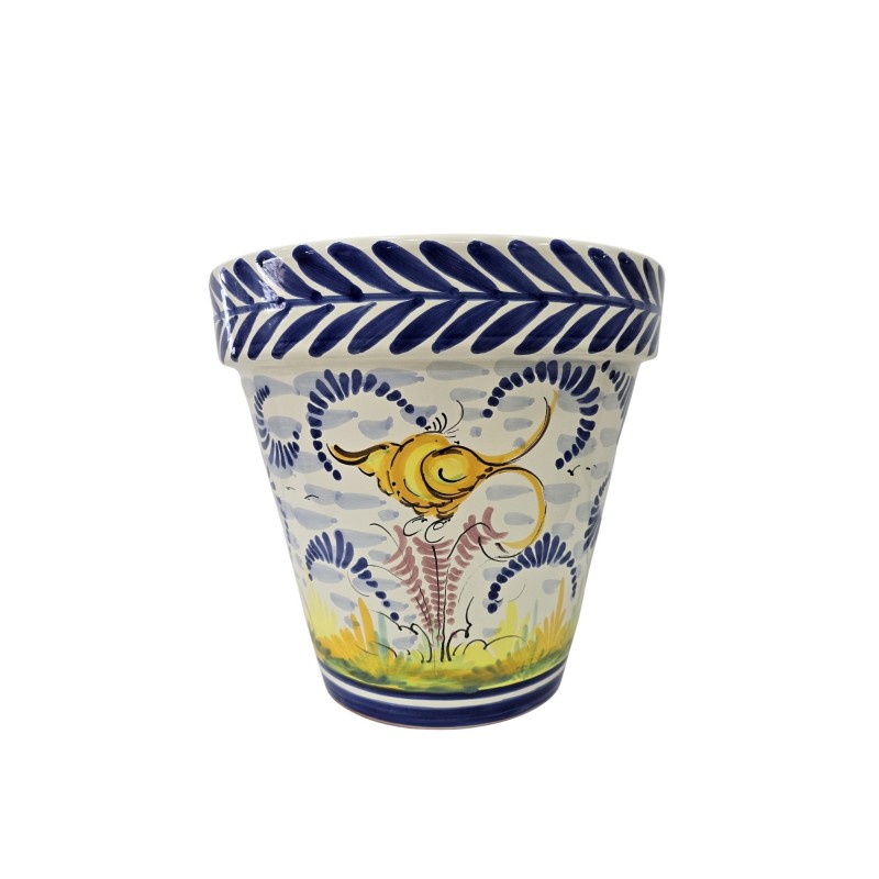 Maceta terracota, decorada a mano cada pieza está diseñada y adaptada al formato de la pieza, por lo tanto, no hay ninguna pieza igual esa es la autenticidad de la cerámica hecha a mano.