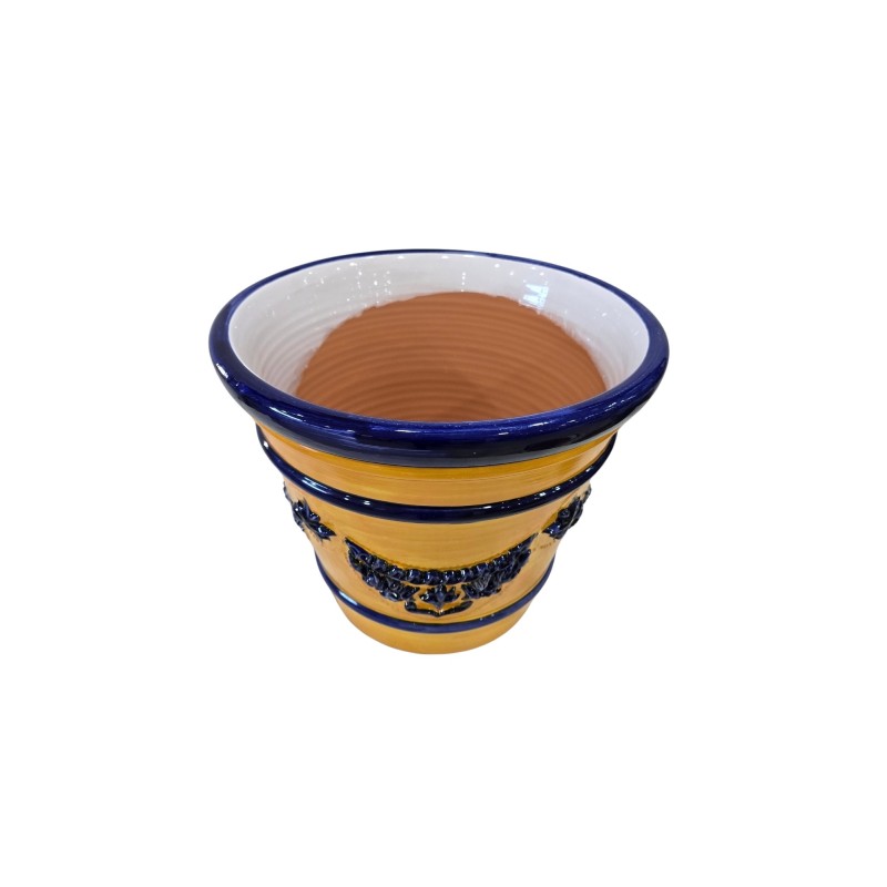 Maceta terracota, decorada a mano cada pieza está diseñada y adaptada al formato de la pieza, por lo tanto, no hay ninguna pieza igual esa es la autenticidad de la cerámica hecha a mano.