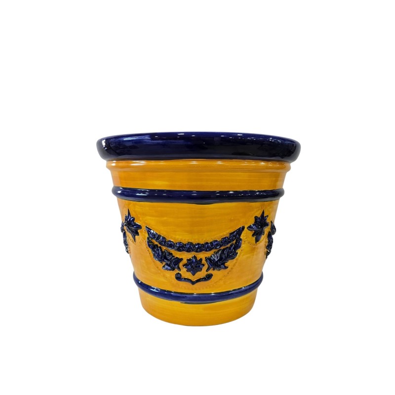 Maceta terracota, decorada a mano cada pieza está diseñada y adaptada al formato de la pieza, por lo tanto, no hay ninguna pieza igual esa es la autenticidad de la cerámica hecha a mano.