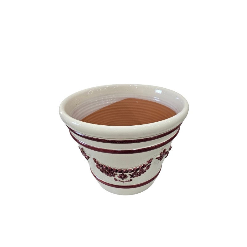 Maceta terracota, decorada a mano cada pieza está diseñada y adaptada al formato de la pieza, por lo tanto, no hay ninguna pieza igual esa es la autenticidad de la cerámica hecha a mano.