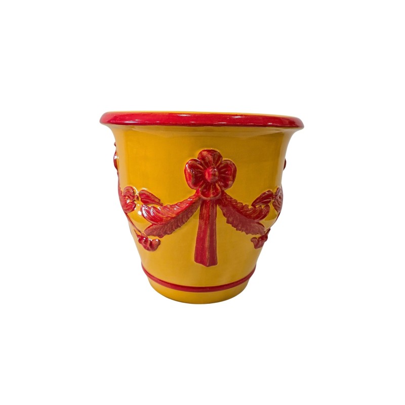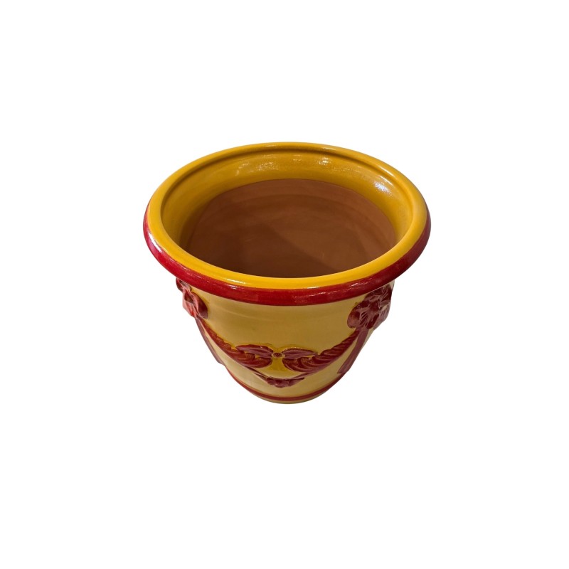 Maceta terracota, decorada a mano cada pieza está diseñada y adaptada al formato de la pieza, por lo tanto, no hay ninguna pieza igual esa es la autenticidad de la cerámica hecha a mano.