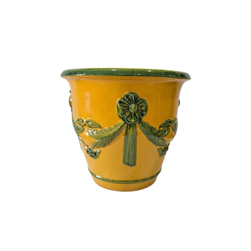 Maceta terracota, decorada a mano cada pieza está diseñada y adaptada al formato de la pieza, por lo tanto, no hay ninguna pieza igual esa es la autenticidad de la cerámica hecha a mano.