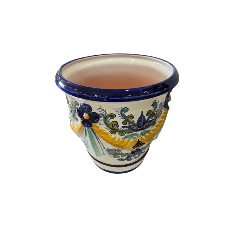 Maceta terracota, decorada a mano cada pieza está diseñada y adaptada al formato de la pieza, por lo tanto, no hay ninguna pieza igual esa es la autenticidad de la cerámica hecha a mano.