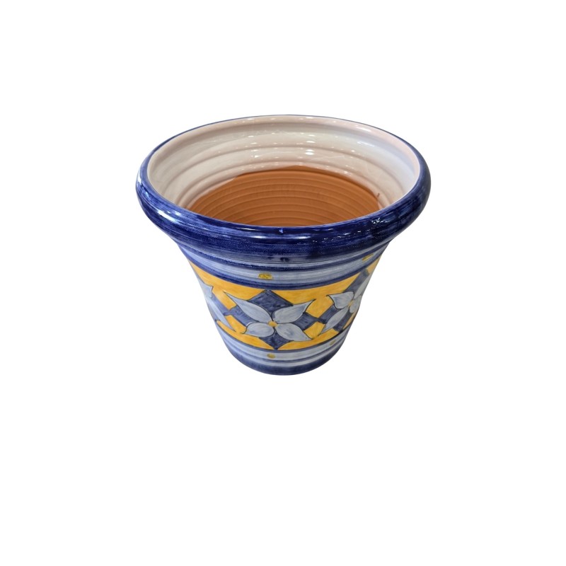 Maceta terracota, decorada a mano cada pieza está diseñada y adaptada al formato de la pieza, por lo tanto, no hay ninguna pieza igual esa es la autenticidad de la cerámica hecha a mano.