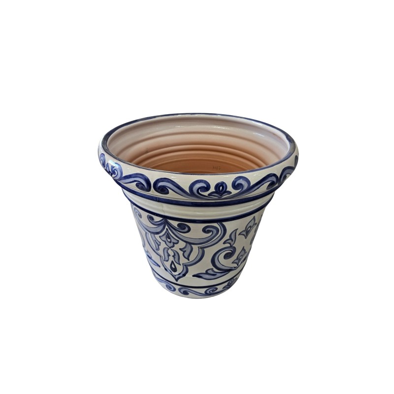 Maceta terracota, decorada a mano cada pieza está diseñada y adaptada al formato de la pieza, por lo tanto, no hay ninguna pieza igual esa es la autenticidad de la cerámica hecha a mano.