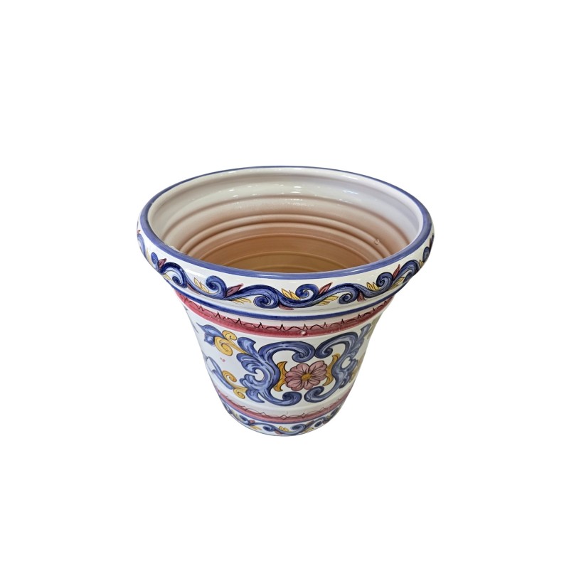 Maceta terracota, decorada a mano cada pieza está diseñada y adaptada al formato de la pieza, por lo tanto, no hay ninguna pieza igual esa es la autenticidad de la cerámica hecha a mano.