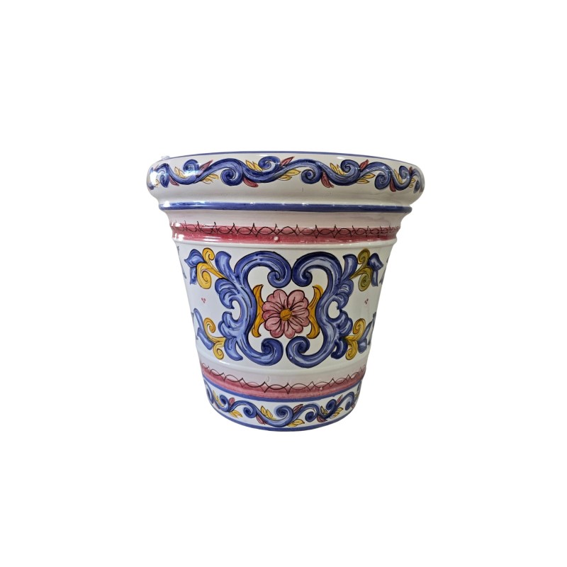 Maceta terracota, decorada a mano cada pieza está diseñada y adaptada al formato de la pieza, por lo tanto, no hay ninguna pieza igual esa es la autenticidad de la cerámica hecha a mano.