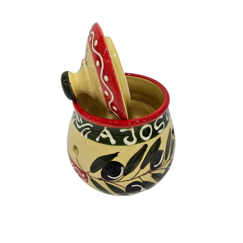 Diseñado con tres orificios laterales que permiten ventilar el interior y conservar los ajos frescos por más tiempo, también es perfecto para guardar otras pequeñas cosas de cocina.